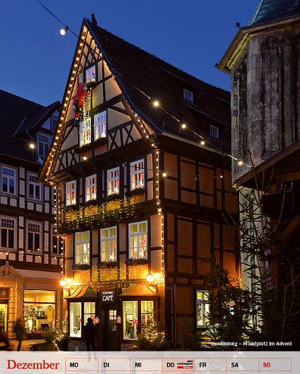 Im herbstlichen Lauenstein stärkt eine deftige Sächsische Soljanka und zum Jahresende kehren wir in Quedlinburg ein, das UNESCO-Weltkulturerbe ist und uns mit einem typischen Hackus und Knieste als traditionellem Silvestergericht verabschiedet. Alle Rezepte wie gesagt auf der Rückseite des Kalenderblattes. Viel Vergnügen bei der Reise und guten Appetit!