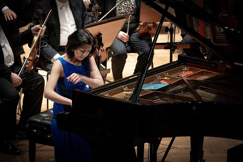 Programm und Besetzung: Alexandria Dariescu, Klavier, Sinfonieorchester Wuppertal , Carl St Clair, Dirigent.