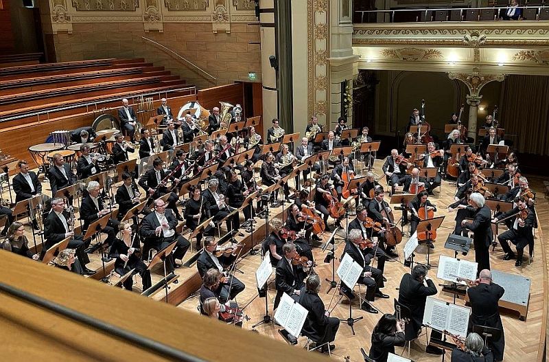Nach der Pause freute sich das leider nicht sehr zahlreich erschienene Publikum dann auf das Hauptwerk des Abends, die Tondichtung „Ein Heldenleben“ des 1899 43jährigen Richard Strauß (1864-1949). Opulent orchestriert (acht Hörner, zwei Tuben; 5 Trompeten, zahlreiche Holzbläser) beschäftigte sich der Komponist nach „Zarathustra“ und „Don Quixote“ hier selbstbewußt mit sich selbst, wobei es ihm um die „musikalischen Entwicklung meiner Empfindungen“ (an Romain Rolland), nicht um eine platte Schilderung seines Lebens ging. „Frei aber einsam“ hat sich Johannes Brahms autobiographisch geäußert. Auf Richard Strauß trifft eher groß, prächtig und schwungvoll zu, jedenfalls zu Beginn. Ironisch gackern später mit der Fülle aller verfügbarer Holzbläser die Musikkritiker los, von denen sich in der Presse aber nicht alle dauernd „sehr scharf und spitzig, schnarrend, zischend" gebärden, wie Richard dazu in der Partitur vermerkt hatte. Unter dem sehr präzisen und in der Musik lebenden Dirigat von St. Clair begeisterten alle Facetten dieser an Klangfarben wie thematisch ungeheuer reichen Musik, auch wenn die Trompeten zwischendurch die Bühne verlassen und von außen aus der Ferne zu hören sind. Jedes Detail dieser hochkomplexen Musik wurde dem aufmerksamen Orchester vom souverän auswendig dirigierenden Ehrengast exakt wie gestisch elegant vermittelt, der vom Genius loci inspiriert schien, hatte doch Richard Strauß selbst als Dirigent den Großen Saal der Historischen Stadthalle im Jahre 1900, also kurz nach der Uraufführung seines « Heldenlebens », eröffnet !