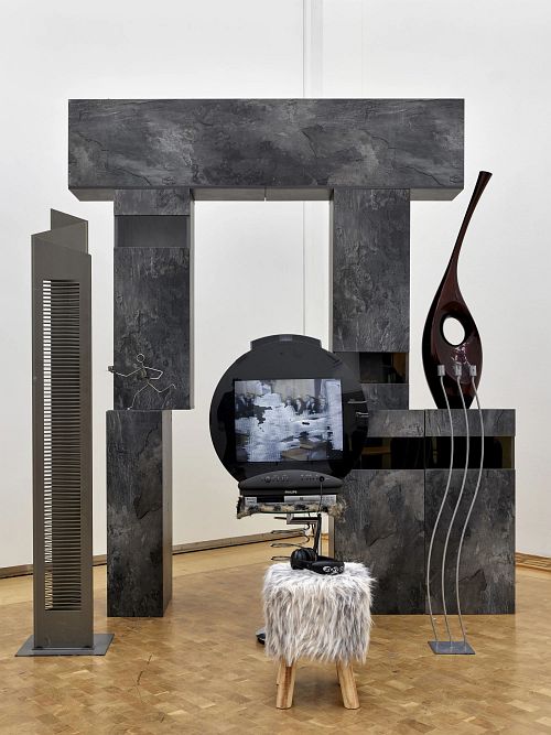 , 2018, Verschiedenen Möbel, Requisiten, Video (4 3, Farbton), Ausstellungsansicht Museum Abteilberg 2018, Courtesy Die Künstlerin, Foto Achim Kukulies, Düsseldorf 500.jpg)