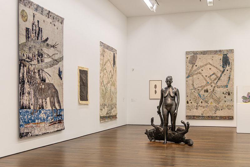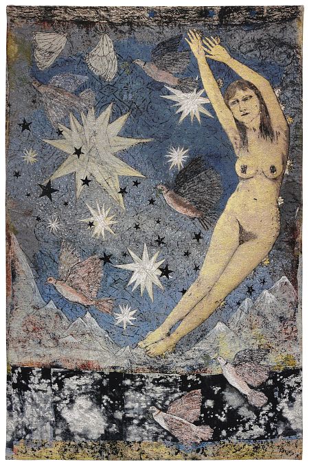 Die Amerikanerin Kiki Smith (*1954) gehört zu den einflußreichsten feministischen Künstlerinnen ihrer Generation. Ihre frühen Arbeiten sind geprägt von gesellschaftlichen Debatten der 1980er Jahre, wie die über AIDS, später beschäftigt sie sich intensiv mit dem weiblichen Körper. Anfang der 90er Jahre beginnt sie, sich vermehrt mit Umwelt und Natur als schützenswertem Raum auseinanderzusetzen. Die in enger Zusammenarbeit mit der Künstlerin entwickelte Schau vereint 54 Werke. Im Zentrum stehen ihre großformatigen, eindrucksvoll gestalteten Jacquard-Tapisserien. Kiki Smith (geboren 1954 in Nürnberg, lebt und arbeitet in New York) ist eine international anerkannte Künstlerin mit einem facettenreichen Werk, das sich nunmehr über vier Jahrzehnte erstreckt: In Skulpturen, Zeichnungen, Druckgrafiken, Fotografien oder Textilarbeiten verhandelt Smith eine Weltsicht, die von kosmischer Ganzheitlichkeit geprägt ist. Ausgangspunkt ihres künstlerischen Schaffens ist der Raum, der sie umgibt, mit den Beziehungen, die sie in ihrem Lebensumfeld zu Menschen, Natur und Tierwelt spannt. Leben, Tod und transzendentes Sein, die Kiki Smith in ihren Bildwelten verhandelt, sind durch permeable Grenzen miteinander verbunden. Dabei ist Smiths Kunst von Beginn an mit feministischen Themen und Anliegen verbunden. Ihre Betrachtungen des weiblichen Körpers, von menschlichen Organen oder von Tieren in Landschaften verknüpft sie mit einer parabelhaften Übertragung sowie mit der materiellen Bedingtheit ihrer Existenz, auf die sie in ihrem Werk durch eine Bandbreite an Materialien verweist: von Bronze über Edelsteine bis hin zu feinsten Silberfäden.