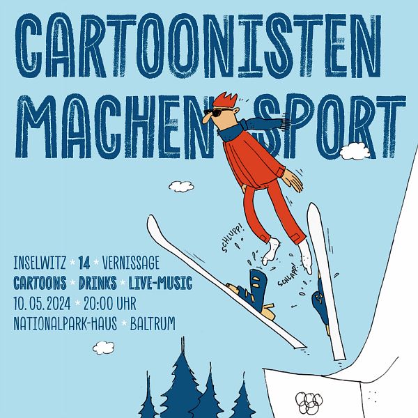 Die vierzehnte Ausgabe des Baltrumer Inselwitz wird der fitteste Cartoonworkshop aller Zeiten! Als wäre es für die Teilnehmenden nicht schon sportlich genug, in nur fünf Tagen hunderte Cartoons auszudenken, aufzuzeichnen, einzurahmen und aufzuhängen, es wird von den aus ganz Deutschland angereisten Zeichnerinnen und Zeichnern obendrein abverlangt, sich selbst mit joggen, schwimmen und der täglichen Strandgymnastik fitzuhalten. Puuh!