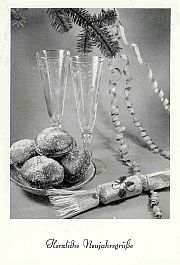 In der "Nacht der guten Wünsche" (und der guten Vorsätze) stehen auch besondere Speisen und Getränke bereit, die zur Beeinflussung des Schicksals eingesetzt werden. In ihrem Buch "Feste und Bräuche" berichtet Sybil Gräfin Schönfeld davon, daß die Erbsensuppe in vielen Familien bis heute als klassisches Silvestergericht gilt, das Reichtum und Segen bringen soll. Beliebt sind auch Karpfen, Krapfen, Glückstorten aus Reis, Glückskuchen mit eingebackenen Geldmünzen oder Brezeln als Symbole der Unendlichkeit und Verbundenheit. Auch Neujahrskranz und Zopfbrot haben sich bis heute als Mitbringsel für die letzte Nacht des Jahres gehalten. Ihre Formen beschwören einen magischen Schutz gegen Unheil und Dämonen.