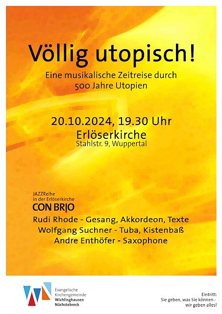 Diesem Satz von Helmut Schmidt zum Trotz erzählt das Trio Rudi Rhode - Wolfgang Suchner - Andre Enthöfer die 500-jährige Geschichte der Utopien.
