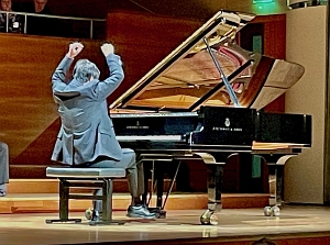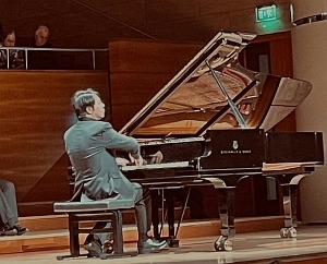 recht ordentlich wilde Liebe liegt darin in einigen Sätzen, und Dein Leben und meines und manche Deiner Blicke“. In diesen Stücken scheint sich die zerrissene Seele des 28-jährigen Robert musikalisch auszudrücken. Schon die Satzüberschriften lassen die emotionale Erregung erkennen, die sich zwischen immerhin parallelen Tonarten g-Moll und B-Dur abspielt. Das Paar in seiner Liebe hatte in dieser Zeit unter dem starren zukünftigen Schwiegervater bzw. ehemaligen Klavierlehrer zu leiden. Wie dem auch war, Schumann wurde von E.T.A. Hoffmanns literarischer Figur des Kapellmeisters Johannes Kreisler zu diesen Klavierfantasien angeregt. „Äußerst bewegt“ jagte der 1. Satz los, sprühte vor musikalischen Einfällen fast improvisatorischen Charakters. Nachdenklich erklang der ruhigere Mittelteil und im ganz anderen Licht der sehr innige und nicht zu rasche 2. Satz. Wegen einer Tendovaginitis stenosans des 4. Fingers der rechten Hand hat Robert seine musikalischen Eruptionen selbst nicht spielen können. Seiner musikalischen Stimmungslabilität hatte er textlich mit den Fantasiefiguren Florestan und Eusebius nachgespürt, musikalisch scheinen sie sich in auch in Kreisleriana zu streiten, während Robert selbst mit Bier und Wein, Champagner und starken Zigarren immer versucht hat seine niederdrückende Melancholie zu ertragen. Synkopisch frisch, „sehr aufgeregt“, mit häufig gegenläufiger Stimmführung beeindruckt das Klavierspiel des Ausnahmepianisten durch hohe dynamische Amplitude und eine bemerkenswerte Präsenz des Flügelklangs in tieferen Lagen. Über Orgelpunkten schien sich Robert Schumann die Töne gelegentlich fast zusammengesucht zu haben, bevor sie sich im Nichts verlieren. Stürmisch lebhaftem Ritt folgten Episoden größter Nachdenklichkeit und man fragt sich, was diese Stücke untereinander verbindet. Handelt es sich um meditative Selbstgespräche des Komponisten und im Konzert um seinen Dialog mit dem Pianisten? Ohne jede Allüre gelang dem Pianisten eine innere, atmende