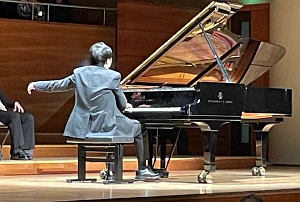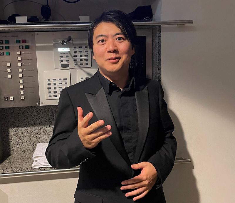 Gleich bei Op..7 Nr. 3, die aus aus der Zeit seiner Übersiedlung nach Paris stammt, wurde deutlich, daß es sich nicht um Salonmusik handelt, sondern um ursprüngliche ländlich bäurische Musik, die von Melodie und wie der Wiener Walzer vom ¾ Takt lebt, sich aber durch eine andere Betonung der Taktzeiten von ihm durchaus unterscheidet. Jede Mazurka bot unter diesen Pianisten-Händen einen Blick in die Seele und ihre wechselnden Zustände und es leuchtete unmittelbar ein, daß die kleine Form, der musikalische Moment sozusagen, oder das Lied Urformen der Romantik darstellen. Technisch natürlich souverän, musikalisch von höchster Sensibilität, bot Lang Lang diese romantische Juwelen in einer Qualität, wie man sie selten so hört. Kurze aufsteigend perlende Arpeggien, gesangliche Mittelstimmen, fremde Harmonien entwickelten sich in freien Tempi. In dieser atemberaubenden Dichte und anspruchsvollsten melancholisch-musikalischen Eleganz schwindet die Banalität des Alltags weit ins Weite. Bei der Polonaise fis- Moll op. 44 tobte sich der Virtuose dann vollgriffig aus, ließ den Flügel in den ruhigeren Abschnitten singen. Zuletzt brauste die Musik erneut los, bevor ihm die Herzen seines Publikums in grandiosem Applaus dem Virtuosen zuflogen. Blumen, stehende Ovationen, Zugaben! Ein großer Klavierabend in Wuppertal. Nach kurzem Gespräch mit dem Rezensenten über Florestan und Eusebius posierte der freundliche und zugewandte Künstler ihm für einen Schnappschuß.