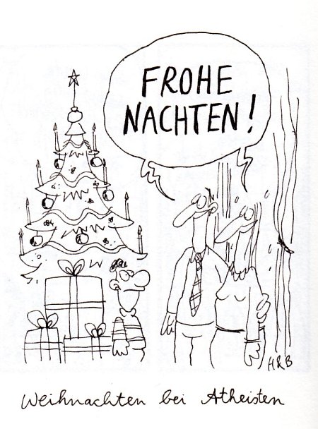 Hauck & Bauer, das bewährt zynisch heitere Cartoon-Duo gehört wohl zu jenen oder aber es  möchte mal all den Misanthropen im Land augenzwinkernd ein ebenso bissiges wie lustiges und angemessenes Weihnachtsgeschenk machen. Also haben sie ein tannengrünes Büchlein mit den festlichsten, fröhlichsten, feierlichsten und miesepetrigsten Cartoons zusammengestellt, die sie laut dem Kunstmann Verlag je gezeichnet haben. Ein paar Beispiele zeigen wir Ihnen, damit Sie sehen können, ob Sie damit jemandem aus Ihrer Familie, Ihrem Umfeld eine Freude mahen können.
