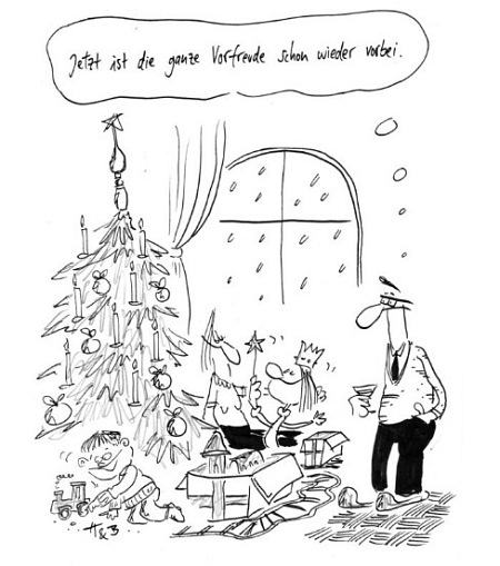 Wir alle wissen es: Da freut man sich auf ein paar Tage Ruhe zu Weihnachten, zuvor wird man im Fernseher von Reklame und den jährlich zuverlässig wiederkehrenden Schmonzetten á la „Ist das Leben nicht schön?“ oder „Drei Haselnüsse für Aschenblödel“ belästigt, an den Weihnachtsmarktbuden mit „White Christmas“ und „Jingle Bells“ fast bis ins Koma gedudelt,  und dann stellt sich auch noch raus, daß man das Fest der Liebe zu allem Elend auch noch mit der Familie feiern muß. Schon freut man sich auf die Zeit nach Weihnachten. Wenn man sich mal genau umschaut, gibt es nicht wenige, die drei Kreuze schlagen, wenn´s rum ist.