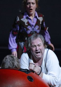 Jan Vacik, daß er zu den wirklich großen Interpreten der Titelpartie gehört, hier noch eine Steigerung in der Intensität der Darstellung mitreißend und stimmlich an die Grenzen gehend, dabei auch immer fähig zur lyrischen Intrspektive. Majken Bjerno ist eine recht dramatische Ellen Orford, unsentimental , aber in den Höhenansätzen sich leicht in ein Dauerforte versteifend. Tomas Möwes anfängliches Vibrato legt sich und mit kernigem Baßbariton gibt er einen tollen Kapitän Balstrode, ebenso prächtige tiefe Männerstimmen bringen Michael Tews als Jurist Swallow und Dong-Won Seo als Fuhrmann Hobson mit. Anna Agathonos wir als Auntie fast selbst Opfer des Mobs, nicht wegen ihres schönen Mezzos oder ihrer mit Elise Kaufmann und Noriko Ogawa-Yatake recht reifen, präsenten Nichten. Ned Keene ist ein Bilderbuch-Don Juan mit dem klangvollen Bariton Piotr Procheras, kein Wunder, daß die arme skurile Seele der Mrs. Sedley nicht nur von den Drogen des Apothekers abhängig ist, Marie-Helen Joel spielt das auf eine äußerst berührende, sensible Weise. Eine wirklich widerliche Bazille von volksverhetzendem Prediger gelingt William Saetre mit diesmal passend gellendem Tenor, ebenso wie sein salbungsvoller anglikanischer Kollege bei E. Mark Murphy gegensetzlich wirkt. Christian Pelker spielt den armen Waisenjungen, der zwischen den Erwachsenen zerrieben wird, angenehm natürlich.