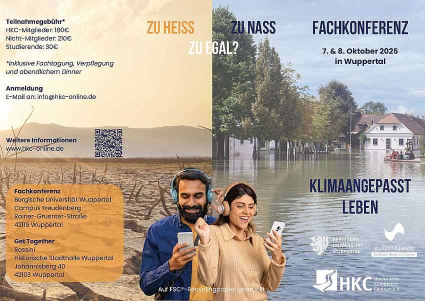 Klimawandel-bedingte Risiken wie Starkregen und Dürre erfordern praxisnahe Anpassungsstrategien und gemeinschaftliche Lösungen. Die Bergische Universität, der Wupperverband und das Hochwasserkompetenz Centrum (HKC) laden deshalb am 7. und 8. Oktober zur Fachkonferenz „Klimaangepaßt leben“ auf den Campus Freudenberg ein, um über diese Strategien und Lösungen zu diskutieren. Anmeldungen sind noch möglich.