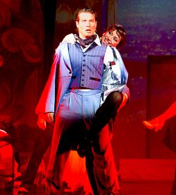 Große Oper Die hier Fatime (Stefanie Tydén in Remscheid vorzüglich anstelle der erkrankten Anna Montanaro) genannte Kurtisane ist in der ins Moulin Rouge verlegten Handlung die „Devisenbeschafferin“ des Etablissements, in dem auch Henri de Toulouse-Lautrec (Markus Streubel) herumwuselt. Sie gibt sich dem ihrer Schönheit verfallenen Grafen Armand (Jesper Tydén) auf Drängen der Direktorin (Sissy Staudinger als Hella von Sinnen-Verschnitt) hin, um das Geld für eine neue Show zusammenzu..., ahem, ...bringen. Dabei verliebt sie sich in den wohlhabenden Adligen. Die Show – es geht natürlich um die Liebe, worum sonst – wird im Moulin Rouge aufgezogen, Armands Vater erscheint und drängt auf das Ende der unstandesgemäßen Verbindung . Fatime verzichtet, stirbt schließlich in den Armen des Geliebten. Große Oper.