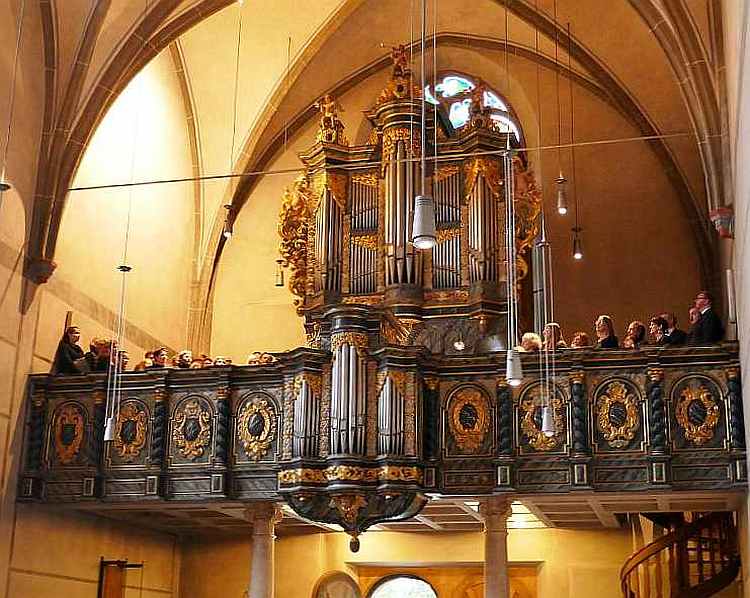 Bei strömendem Starkregen wollten alle in die Klosterkirche, wo es wenigsten trocken, wenn auch keineswegs warm war. Aber wenn der international bekannte Kammerchor aus Maulbronn, dem kleinen keltischen Dorf im Kraichgau bzw. dem bedeutendsten Kloster nördlich der Alpen, nach Beyenburg kommt, ist das Interesse groß. Zu diesem bemerkenswerten Konzert hatten die Wuppertaler Orgeltage als Abschluß des 52. WOT-Jahres eingeladen und Wolfgang Kläsener wies bei der Begrüßung daraufhin, daß am Ende gespendet werde solle - nicht für den Chor, sondern für Renovierung und Erhalt der Beyenburger Klosterkirche.