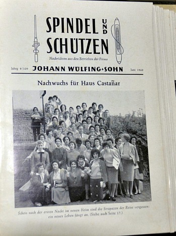 Diese Spanierinnen – mehr als 700 Personen, nach 15 Busreisen – brachten in der Zeit zwischen 1960 und 1973 aber nicht nur ihre Arbeitskraft mit, sondern auch ihre Sprache, ihre kulturellen Praktiken und ihre Formen der Geselligkeit. Sie wurden sozusagen zu lebendigen Trägerinnen spanischer Kultur in einem der industriellen Zentren Europas. Und das läßt sich wunderbar in der hauseigenen Werkszeitung der Firma Wülfing in Dahlerau nachvollziehen. Dazu Chihaia: „In der Zeitschrift ´Spindel und Schützen` ist das fotografisch sehr stark dokumentiert, weil eben eine Betonung auf den Freizeitaktivitäten der Spanierinnen liegt. Man sieht, wie sie fernsehen oder spanisches Radio hören. Auch Wunschkonzerte mit Musik, die ihnen aus der Heimat geschickt wurde, sind dabei. Man sieht sie stricken und schreiben. Es werden viele Briefe gewechselt, aber auch Tonbandaufnahmen, und die spanische Sprache ist sehr präsent in der Wülfingfabrik, auch, weil die Werkszeitschrift teilweise auf Spanisch veröffentlicht wurde. Die Region spielt eine wichtige Rolle.“ Die Werkszeitung erschien monatlich und berichtete u.a. über neue Mitarbeiterinnen, Eheschließungen, Kinder, langfristig Erkrankte sowie religiöse Momente und auch Ausflüge. „Sie haben alles dokumentiert für die Gastarbeiterinnen. Die Werkszeitschriften waren stark bebildert, es gab Dolmetscher, die immer zur Verfügung standen, wenn es Probleme im Werk gab und die kümmerten sich auch um das Wohlergehen der Frauen.“