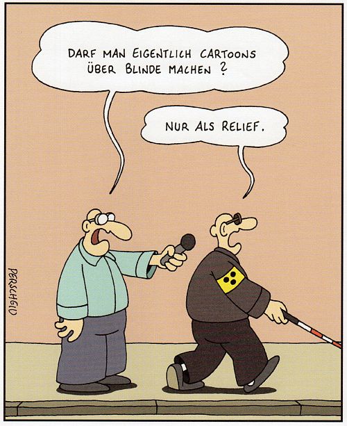 Diese hier nun mit 297 überwiegend farbigen und einigen schwarz/weißen Exempeln ist unter der kundigen Redaktion von Jana Legal zu einem Schmuckstück geworden, eine eingekürzte Perscheid-Bibel wenn man so will, auf jeden Fall ein ganz Neues Testament. Wir treffen auf eine amüsante Mischung aus Bewährtem und Unverzichtbarem, bisher nie gezeigten Perscheids und Standards. Wer möchte in einem Perscheid-Buch auf Bosheiten gegen Blondinen, Maliziöses über Männer, Fieses über Frauen, Sexistisches zum Sex, Infames über Idioten, Krasses mit Kindern, Jux mit Jugendlichen, Gemeinheiten gegen die Geschlechter, Peinliches über Putin, Süffisantes über Sodomie, Despektierliches über Doofe und Dicke oder Radikales über Religionen verzichten? Eben. Das möchte keiner und deshalb bekommen Sie all das hier. In Hülle und Fülle. Weil die Welt voll davon ist und Martin Perscheid in der Lage war all die Unzulänglichkeiten um sich herum zu sehen und mit dem Zeichenstift in die bestmögliche Form der Frechheit umzusetzen. Hauptsache unkorrekt. Zack.