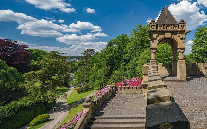 Wuppertal, gerne auch die Hauptstadt des Bergischen Landes genannt, bietet viel mehr, als seine oft graue Fassade verspricht. Besonders ist schon seine Lage zwischen den grünen Anhöhen nördlich und südlich der Wupper, die von Ost nach West das enge Tal durchplätschert, aber wie man beim Hochwasser 2021 erleben mußte, auch zum reißenden Strom werden kann. Mit dem Zusammenschluß der Industrie- und Handelsstädte Barmen und Elberfeld im Jahr durch die preußische Gebietsreform 1929 und der Eingemeindung von Cronenberg, Ronsdorf, Vohwinkel, Beyenburg und Langerfeld wurden die eins autarken Gemeinden zur Großstadt Wuppertal. Wirklich zusammengewachsen sind sie allerdings nie, wodurch jeder Teil seinen eigenen Charakter behielt. Schon 28 Jahre zuvor wurde die heute weltbekannte Schwebebahn gebaut, die seitdem und bisher, überwiegend über der Wupper, am westlichen Ende mitten zwischen den Häusern die Stadtteile Vohwinkel – Elberfeld – Barmen auf 13 km Länge verbindet.