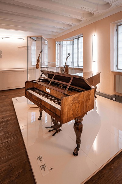 Der Flügel hat einen Umfang von 6,5 Oktaven (C1 bis f4) und eine Wiener Mechanik; ab D ist er vierchörig bespannt (hat also vier statt der heute noch allgemein üblichen drei Saiten pro Taste). Dem Zeitgeist entsprechend wurden Mitte des 19. Jahrhunderts neue Beine für das Instrument angefertigt, und der Flügel erhielt eine neue Lyra mit nur noch drei Pedalen (Verschiebung, Piano, Dämpfung). Der wohl vorher vorhandene Janitscharenzug, mit dem besondere Klangeffekte erzeugt werden konnten, wurde ausgebaut. In den 1960er-Jahren wurde das Instrument erneut mit den damals üblichen schwer reversiblen Methoden überholt. Heute ist der Flügel nicht mehr spielbar, von einer weiteren Restaurierung raten alle Fachleute ab.