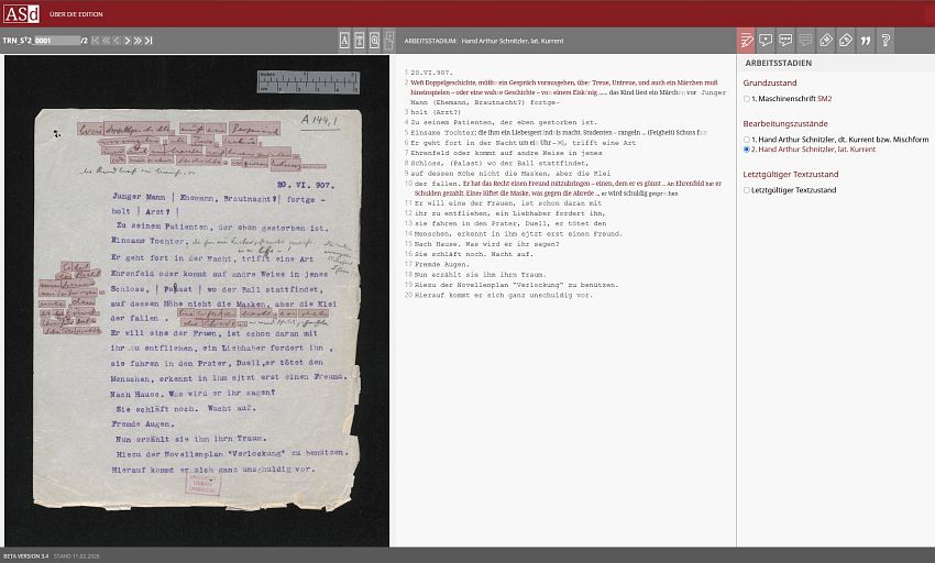 Das Forschungsprojekt Arthur Schnitzler digital. Digitale historisch-kritische Edition (Werke 1905 bis 1931) wird von Wissenschaftlern an der Bergischen Universität Wuppertal, der University of Cambridge und dem University College London in Kooperation mit der Cambridge University Library, dem Deutschen Literaturarchiv Marbach, dem Arthur-Schnitzler-Archiv-Freiburg sowie mit dem Trier Center for Digital Humanities durchgeführt. Das deutsche, Anfang 2012 gegründete und als Forschungsvorhaben der Nordrhein-Westfälischen Akademie der Wissenschaften und der Künste im Rahmen des Akademienprogramms geförderte Teilprojekt bearbeitet die Werke ab 1914.