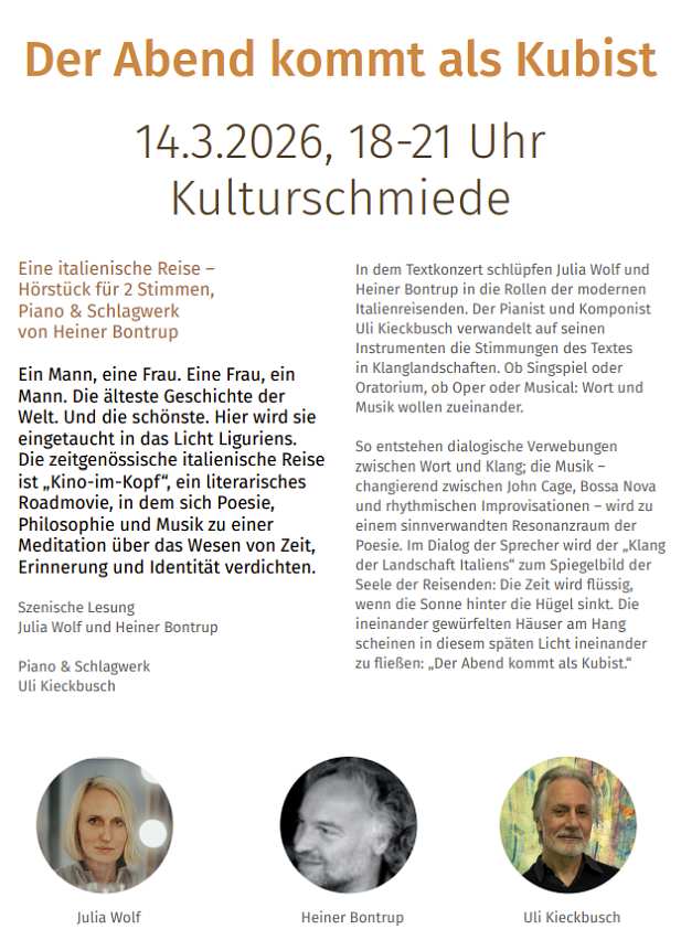 Lesung mit Musik am 14.3.2026 in der Kulturschmiede