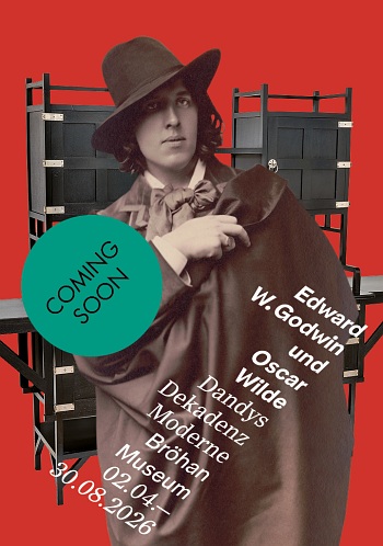 Der Schriftsteller Oscar Wilde (1854–1900) war ein enger Freund Godwins. Als ikonische Gestalt des viktorianischen Englands prägte er das Lebensgefühl seiner Zeit zwischen Dandytum und Dekadenz. Godwin und Wilde waren Brüder im Geiste, deren künstlerisches Werk jeweils Ausdruck einer umfassenden Bildung und einer außerordentlichen Wißbegier war. Beide strebten nach einer ästhetischen Durchdringung des Alltags und seiner Verwandlung in Kunst. Als Universalgelehrte vereinten sie architekturtheoretisches Wissen mit tiefgreifender Kenntnis der Kunst- und Kulturgeschichte. Diese intellektuelle Breite durchzieht ihr gesamtes Schaffen und macht sie zu kongenialen Stilikonen, deren Ruhm weit über die Grenzen einzelner Disziplinen hinausreicht. In der Ausstellung treten sie in einen Dialog aus Gedanken und Entwürfen. Anhand von zahlreichen hochkarätigen Leihgaben wird der Künstler als Dandy zwischen Dekadenz und Moderne thematisiert.