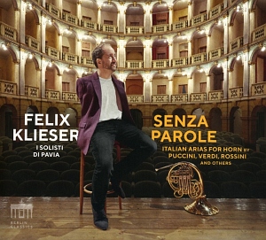 Es ist schon erstaunlich, wie gut berühmte Arien der italienischen Oper sich in Kurzfassungen für Horn solo mit Orchesterbegleitung eignen, werden sie nur mit viel Gefühl arrangiert und entsprechend gespielt. Felix Klieser hat das spielerische Talent und belegt es mit seinem achten Album bei Berlin Classics „Senza Parole“, das mit fast einer Stunde Spielzeit einen Querschnitt der berühmtesten Opern von Gioacchino Rossini, Giuseppe Verdi, Giacomo Puccini, Gaetano Donizetti, Vincenzo Bellini und Eduardo di Capua bietet. Für die Bearbeitung der Werke fiel Kliesers Wahl auf den erfahrenen Arrangeur Wolfgang Renz, mit dem er bereits für andere Alben zusammengearbeitet hat.