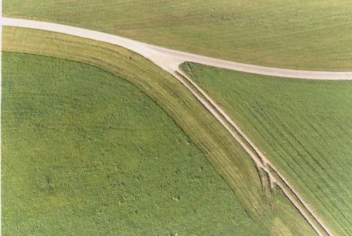 greifen nach der Erde aus dem Raum. Wege gehen weit ins Land und zeigens.