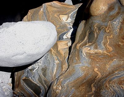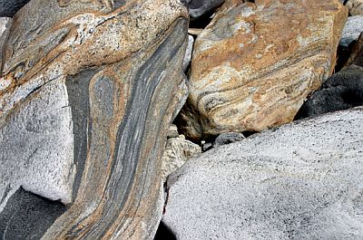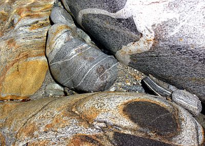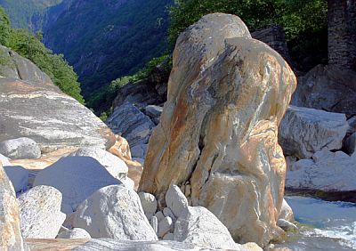 Von hier aus sprudelt, fließt, rauscht oder donnert der Fluß hinunter zum Lago Maggiore. Der Name Verzasca leitet sich von verde aqua ab, was soviel wie grünes Wasser bedeutet. Und dieses Grün ist unbeschreiblich. Seit Jahrtausenden bahnt das Wasser sich seinen Weg zwischen und durch Granit. Vom Kiesel bis zur pittoresken Felsenformationen formte und schliff es sich ein Flußbett, dessen bizarre Formationen unzählige Touristen anziehen. Gottseidank sind die meisten von ihnen Tagestouristen. Spätestens gegen 17:00 Uhr sind sie verschwunden. Das Tal gehört jetzt uns. Von Westen her scheint die Sonne längs des Tals, taucht ein in wirbelnde Gischt oder sanfte kleine Seen, die zwischen den Felsen entstanden sind. Die geschliffenen Steine glänzen im grünlich schimmernden Wasser, zeigen uns ihre wundersamen Maserungen. Eine beruhigende meditative Stimmung breitet sich aus - ein Paradies.
