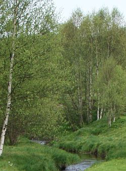 Er kam von oben angeströmt, als hätte jemand eine Staumauer geöffnet. Ich ging gerade mit meinem Hund spazieren, als der Bach sich uns anschloß. Eigentlich war sein Bachbett leer gewesen, aber nun konnte man sehen wie der Bach es in Besitz nahm. Ich ging ein wenig langsamer, damit der Ellerbach mit uns überhaupt Schritt halten konnte. Auf der rechten Seite floß der Ellerbach, links lief mein Hund umher und ich ging in der Mitte. Ein sonderbares Trio. Der Ellerbach mußte auf seinem Weg seinem Bachbett folgen, da waren wir ein wenig ungebundener. Kurz vor dem Wald- und Wiesencafé trennten sich unsere Wege. Ich sagte noch „Tschüß Ellerbach. Schön, daß wir uns kennengelernt haben.“, da rauschte er schon vondannen.