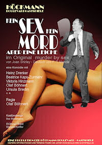 Der Freitagabend soll der Unterhaltung und Entspannung dienen. Das haben sich die Theaterbesucher nach einer harten Arbeitswoche verdient. Als „Die Komödie des Jahres“ preist das Boulevard-Theater Höckmann seine unter der Regie von Olaf Böhnert aufgeführte Produktion „Kein Sex, kein Mord, aber eine Leiche“ (Murder by Sex) von Joan Shirley an. So kürzlich auch als Gastspiel im Remscheider Teo Otto Theater. Viel Personal auf der Bühne, ein recht hübsches Bühnenbild (Michael Körffer) – besonders schön der Blick in den Garten - und eingangs sehr viel bemühtes Gerede zwischen Bernie Anderson (Heinz Drenker) und seiner Frau Nicole (Britta Kohlhaas), um die Zuschauer in eine völlig krude, hanebüchene, jeden Faden vermissen lassende Handlung (also keine) einzuführen. Von der Bühne hat man ein Geschrei gehört... Plot und dramatis personae: Bernie, Ex-Finanzberater mit End-Life-Krise schreibt an einem Krimi. Nicole, Ärztin, praktiziert zu Hause (!), weil in ihrer Klink die Decke gestrichen wird. Beide teilen sich das Gartenzimmer als Praxis und Atelier. Bernie malt nämlich auch. Durch Haus und Praxis tapst ungelenk eine schrill demente Tante Dot (Doris Otto). Der beleibte Bernie hat bei einem Krimi-Seminar mit der langbeinigen Angie (Meike Gottschalk) einen Seitensprung gewagt. Die ist im Zivilberuf eine ziemlich dusselige Edelnutte und kein Mensch weiß, wieso sie ein Krimi-Seminar besucht hat. Besagte Angie taucht unvermittelt und rein zufällig im Garten der Andersons auf, um mit einem „Kunden“ auf dessen Wunsch dort zu zelten. Aha. Man erpreßt sich gegenseitig, doch zwischen Tür und Angel entwickeln Bernie und Angie nebenbei eine Krimi-Idee: „Mord durch Sex“. Der Kunde verscheidet wenig später während des Liebesspiels im Zelt. Also Mord? Hinzu kommen motivlos: Assistenzarzt Sebastian (Olaf Böhnert), der auch im Gartenzimmer praktiziert, eine Tochter Bernies (Beatrice Kaps-Zumahr) - die beiden verlieben sich ineinander -, als einzige Patientin während des ganzen Stücks die hysterische Öko-Schwangere Val (Christina Knebel), eine Leiche (Ralf Schütte, s.o.), die dann doch keine ist - und eine Unmenge so flacher Witzchen, daß man sich an den Kopf faßt. Herr, hilf!