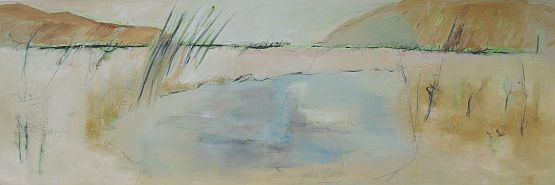 Unbeeinflußt von der farblichen Orientierung bleiben die Mal- und Spachtelverfahren mit Öl und Pigmenten in ihren vielen Arbeitsgängen aufwendig und technisch brillant. Das Auftragen der Bildelemente in vielen Schichten, Spachteln, Wegnehmen, Kratzen, Streuen und Fixieren sind handwerklich und kreativ anspruchsvoll - die Bilder erzählen davon. Ines Hesses Bilder tragen keine Titel. Assoziationen und Phantasie sind erlaubt. Wasser, Spiegelungen, Landschaften, Bühnen - alles ist möglich. SogarGegenständliches, inspiriert von Reiseimpressionen, deutet sich an.