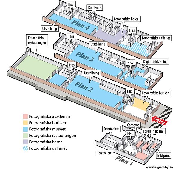 Im ersten Stock des Gebäudes wird es außerdem eine Foto-Akademie geben, die Fotografie-Kurse anbietet. Im Museum sollen nach der bisherigen Planung jährlich vier große und etwa 20 kleinere Ausstellungen gezeigt werden. Der Fokus liege dabei auf zeitgenössischer Fotografie international bekannter Künstler, die noch nie zuvor in Schweden zu sehen waren, so der Sprecher weiter. Darüber hinaus will das Fotografiska aber auch eigene Ausstellungen in Zusammenarbeit mit schwedischen Fotografen präsentieren. Das Museum wird nach der Eröffnung täglich von 10 bis 21 Uhr geöffnet sein. Der Eintritt kostet für Erwachsene SEK 95 (ca. 9,80 Euro), Studenten und Senioren zahlen SEK 70 (ca. 7,20 Euro). Internet: www.fotografiska.eu