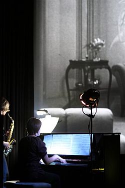 und die Musik zu "Die kleinen Strolche" In vier Kurzfilmen erleben die frechsten Gören der Stummfilm-Ära die unterschiedlichsten Abenteuer, die sie mit Einfallsreichtum meistern. Mickey, Joey, Jackie, Mary, Farina und der Hund mit dem Ring ums Auge bringen vieles zu Fall, stürzen in manche schlammige Grube und ziehen sich mit Charme und Chuzpe stets irgendwie aus der Affäre. In "Wiggle Your Ears" begleitet der Kinobesucher die vom Ohrenwackeln begeisterte Mary bei ihrer Schwärmeirei für den besten Ohrenwackler der Stadt: Harry, "Fast Freight" entführt die Gang in einer rasanten Zugfahrt zu einem unheimlichen Geisterhaus, in "Cats Dogs and Co" dreht sich alles um das liebe Vieh und in "Saturday Lessons" greift der Teufel persönlich in die Wochenendplanung der kleinen Strolche ein. Das Duo M-cine läßt sich gerne von diesen turbulenten Abenteuern inspirieren und improvisiert mit großem Genuß am Piano und am Saxophon aber auch mit außergewöhnlichen Klangerzeugern wie Toypiano, Rezeptionsglocke und Vibraslap. Das Filmforum NRW