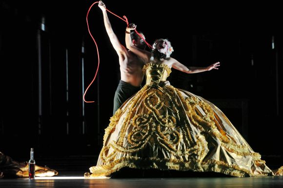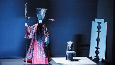 Jakob Peters-Messer läßt im Bühnenbild von Markus Meyer und den Kostümen von Sven Bindseil ein kunstvolles „China“ entstehen. Eine sich perspektivisch verengende schwarze Bühne, ein paar wenige Bühnenelemente genügen, um ein Rokoko-China entstehen zu lassen. Sven Bindseils Kostüme, höfische Pracht des französischen Spätbarock und Rokoko konkurrieren mit asiatisch anmutender Kleidung.