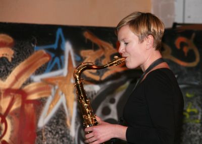 In Monks „Reflections“ hauchte Charlotte sinnlich die Querflöte, ließ Brosowski zärtlich die Besen kreisen, zeigte sich van Meel „sophisticated“ am Kontrabaß und spielte Peter Ortmann das E-Piano sanft swingend. Charlottes „Drahtseilakt“ und „Flowers in the Wind“ oder Eislers Filmmusik zu „Kuhle Wampe“ wurden zu Jazz-Delikatessen.
