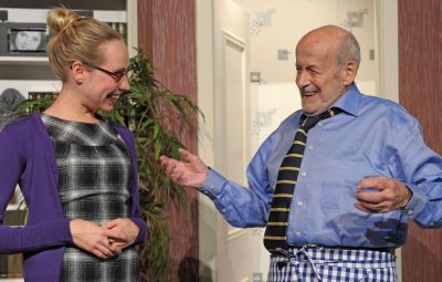 Komödie von Simon Moss Regie: Wolfgang Spier - Ausstattung: Horst Neumann - Besetzung: Wolfgang Spier (Thomas Madison) - Mathias Kopetzki (Richard Madison) - Astrid Straßburger (Harriet Madison) - Leena Fahje (Elaine Baker) - Uta Krüger (Sharon Duckworth) - Marion Reck (Doris Duckworth) Wehe, wenn er losgelassen Es beginnt mit einem bigotten Nachruf auf die verewigte Agnes Madison, die offenbar zu Lebzeiten der Fluch aller Lust gewesen ist. 30 entbehrungsreiche Jahre hat es ihr Gatte Thomas (unnachahmlich Wolfgang Spier) bei ihr in Winkle Bay ausgehalten, jetzt hält ihn nichts mehr - auf nach London! Auf ins Leben! Daß er mittlerweile recht bejahrt ist, stört den alten Knaben keineswegs. Er stürzt sich mit Charme, gepumptem Geld und Champagner auf die holde Weiblichkeit, dieweil er sich bei seinem Sohn Richard (Mathias Kopetzki) und dessen Frau (Astrid Straßburger) unwillkommen einquartiert. Simon Moss hat die kleine, leichte Komödie geschrieben, die Wolfgang Spier für eine deutsche Erstaufführung ausgegraben und inszeniert hat. Boulevard im besten und harmlosesten Sinn und für den Altmeister des Genres eigentlich nicht mehr als eine maßgeschneiderte Fingerübung, bei der ihm ein liebenswertes Ensemble zur Seite steht. Allen routiniert humorvoll und von bewundernswerter Eleganz voran (wer sonst) als lüsterner alter Herr der Mann, dessen Name für Jahrzehnte besten Boulevards in ganz Deutschland steht. In seinem 90. Lebensjahr ist er so erfrischend heiter und witzig, wie er dem Theaterpublikum von Baden-Baden bis Berlin, von Düsseldorf bis München bekannt ist. Auch Mathias Kopetzki als stress- und vatergeplagtem Sohn und Astrid Straßburger als genervter Schwiegertochter passen die Rollen wie angegossen. Fehlen nur noch eine Femme fatale mit einem Schuß Erotik (sehr dezent: Leena Fahje als geldgeile Liebesdienerin), ein bebrilltes häßliches Entlein, das zum Schwan wird (Uta Krüger als Bibliothekarin mit Potential), einige Flaschen algerischer Champagner, das übliche Tür-auf-Tür-zu-Durcheinander und ein paar spritzige Pointen wie: "Faß hier nichts an! - Meine Hände sind sauber! - Aber deine Gedanken sind schmutzig!".