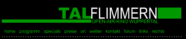 die ersten beiden "Talflimmern"-Abende der Saison 2010 gefeiert. Für die Vorstellung von „Vincent will Meer“ am kommenden Donnerstag, 22. Juli, gibt es bereits jetzt nur noch wenige Restkarten an der Abendkasse - und auch schon einen zweiten Termin: Dienstag, 27. Juli, 21:30 Uhr. Kein Vorverkauf, telefonische Reservierung unter 0202 - 40 86 99 00.