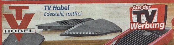 Die Lösung lag als Beilage im Wochenendwerbeblättchen – der TV Hobel, Edelstahl, rostfrei. Von 39,99 auf 19,99 runtergesetzt. Wenn das kein Schnäppchen ist.