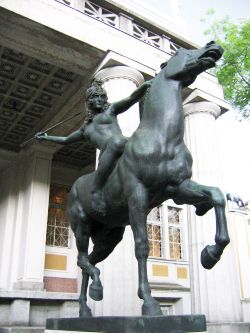 Starkes vom sogenannten schwachen Geschlecht Amazonen-Ausstellung in Speyer Wer die neoklassizistische, 1897/98 errichtete Villa Stuck in München, Wohn- und Atelierhaus des „Malerfürsten“ Franz von Stuck, betreten will, sieht sich vor dem Eingang einer nackten,