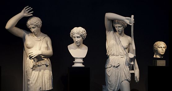 Besichtigung eines Mythos Unweit des mächtigen Kaiserdoms zu Speyer kann der Amazonen-Mythos derzeit in den abgedunkelten, im Eingangsbereich dramatisch inszenierten Räumen des Historischen Museums besichtigt werden. Die Ausstellung beginnt mit einer Fülle von Amazonen-Darstellungen, die griechische Künstler als Vollplastiken, Reliefs oder Vasenmalereien geschaffen haben. In zahlreichen Varianten wird immer wieder der tragische Tod der Penthesilea durchdekliniert, ob als rotfiguriges Vasenbild aus klassischer Zeit, als dynamische hellenistische Figurengruppe oder als Goldrelief auf dem Deckel einer Silberbüchse aus der Zeit um 230 v. Chr. Zu erwähnen sind auch die eindrucksvollen Repliken der Amazonen von Ephesos. Ursprünglich handelte es sich um Bronzestandbilder, die um die Mitte des 5. Jahrhunderts v. Chr. von den berühmtesten Bildhauern ihrer Zeit, darunter Phidias und Polyklet, für den dortigen Artemis-Tempel gestaltet und später von den Römern als Marmorkopien reproduziert wurden. Diese perfekt ausponderierten