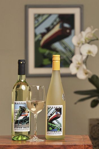 Die beliebten 20er-Jahre-Motive des Wuppertaler Fotografen Wolf Birke aus der edition knapp daneben wird es ab Samstag auch als Wein-Etiketten geben. Ausgetüftelt hat diese Idee der Wuppertaler Weinhändler und Stadtverordnete Thomas Kring. Ausgewählte Weine wie zum Beispiel ein trockener Merlot oder Weißburgunder für 6,00 Euro oder ein Riesling-Secco für 6,90 Euro werden dann mit Motiven der Schwebebahn, mit Elisenturm, Toelleturm und anderen Wuppertaler Sehenswürdigkeiten zu kaufen sein. Zunächst ist der "Wupper-Wein" im Geschäft von Thomas Kring an der Luisenstraße 124 zu erwerben. Weitere Verkaufsstellen in der Stadt sind geplant.