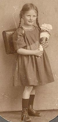 (6) Gern hörte ich kleine Anekdoten von Muttis Schulzeit. Sie hatten über viele Jahre den gleichen Lehrer, der sie, soviel ich mich erinnere, in allen Fächern unterrichtete, auch in Musik. Dieser Lehrer hatte ein Lieblingslied, das war „Wen ich den Wandrer frage, wo willst Du hin? Nach Hause, nach Hause, spricht er mit frohem Sinn.“ Das mußten sie jahrelang immer wieder singen. Mutti hatte eine schöne Singstimme und mußte es mir natürlich auch vorsingen. Dann erzählte sie mir, wie er ihnen beigebracht hatte, was Magnetismus ist. Er hatte es immer so eigentümlich betont und gesagt: „Maaagnetismus ist die Kraft, welche Eisen anzieht!“ Darüber konnte sie sich noch nach Jahrzehnten kaputtlachen, als sie es mir erzählte. Zu ihrer Schulzeit herrschte ja noch eine andere Erziehungsmethode in der Schule und zwar regierte der Rohrstock. So erzählte sie auch, daß der Rektor mit dem Rohrstock an der Schultreppe stand, wenn die Kinder von der Pause hochkamen (sie hätten dann mucksmäuschenstill sein sollen, aber wann sind Kinder das schon) und wenn geschwatzt wurde, ließ er einfach den Rohrstock von oben runterausen, ganz gleich, wen es traf. Mutti meinte, sie hatte sich immer rechtzeitig geduckt, so daß sie nichts abbekam. – Dann erzählte sie auch gern von ihrer Schulfreundin, Viktoria, deren Vater Schneider war, ein Schneider, wie man es in alten Filmen sieht, der mit gekreuzten Beinen auf dem Tisch sitzt und näht. Na, das war interessant für sie. – Weiter erfuhr ich noch von langen Sonntagsspaziergängen zu einem Onkel und von einem anderen Onkel, der einen großen Weichselkahn hatte. Er fuhr mit seinem Schiff auf der Weichsel bis nach Russland und hatte nach Muttis Erinnerung Säcke mit Lebensmitteln, u.a. Zucker, geladen. Wenn er durch Thorn kam, besuchte ihn die Familie auf dem Schiff, was jedes Mal für Mutti ein Angsttraum war. Sie fürchtete immer, vom Schiff zu fallen. Es hatte ja keine Reling und um den schräg abgedeckten Laderaum herum führte ein Steg. Sie erzählte mir, daß sie sich schreiend auf die schräge Abdeckung geschmissen hat und nicht weitergehen wollte. Aber sonst war der Onkel, Vaters Bruder, für die Kinder eine interessante Persönlichkeit. Eigenartigerweise sprach meine Mutti immer nur von Onkel und Tante, ich hörte nie irgendwelche Vornamen. – Die Weichsel muß ein sehr imponierender Fluß sein, von seiner Größe schwärmte Mutti gern. Nur ein Erlebnis auf der Weichsel gehörte nicht zu ihren schönsten Erinnerungen: Im Winter gingen die größeren Geschwister auf dem zugefrorenen Fluß Schlittschuh laufen und Mutti, die Jüngste, wollte das eines Tages auch. Also bekam sie Schlittschuhe und ging mit: Natürlich war sie noch unerfahren und kam auf der (in Wellen) zugefrorenen Weichsel nicht zurecht. Sie stürzte, schlug mit dem Kopf aufs Eis und wurde ohnmächtig und so ohnmächtig brachten sie die Geschwister zur Freude der Mutter nach Hause…