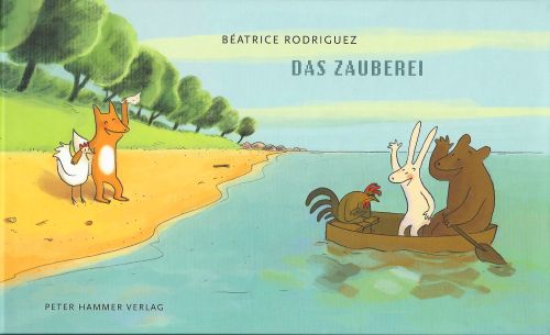 Jeder kann noch das Liedchen aus Kindertagen "Fuchs, du hast die Gans gestohlen - gib sie wieder her!" singen, die Melodie ist für immer in unseren Köpfen verankert. Hätten wir damals schon die zauberhafte Bilder-Geschichte von Béatrice Rodriguez gekannt, wäre der Fuchs bei seiner Betrachtung gewiß besser weggekommen. Die zauberhaft ohne Worte erzählte Geschichte vom geraubten Huhn, das Vertrauen zum Räuber faßt und vom Übeltäter, der sein Opfer ins Herz schließt, erschien 2008 im Peter Hammer Verlag und hat mittlerweile schon mehrere Erfolgsauflagen erlebt. Das liegt sicher auch daran, daß man es den Protagonisten von Herzen gönnt, gegen alle Konvention und Vorurteile glücklich zu werden und ist schon beim ersten Durchblättern leicht zu verstehen, und die Zuneigung, die man spontan gefaßt hat, vertieft sich bei jedem neuen Betrachten der 25 farbigen Seiten. Die liebenswerten Tier-Charaktere, die Béatrice Rodriguez mit Fuchs und Huhn, Bär, Hahn und Kaninchen entwickelt hat, sind einzigartig - die Liebe, die aus jeder Zeichnung spricht, ist so herzerwärmend wie die dargestellten Freundschaften. Die abenteuerliche Jagd über Land und Meer nach dem Hühnerdieb endet an fremdem Gestade mit Harmonie. Nun ja, nur der Hahn ist ein wenig beleidigt, denn welcher Hühnerhof-Beherrscher läßt sich schon gerne seine schönste Henne wegnehmen. Nun läßt Béatrice Rodriguez mit "Das Zauberei" eine Fortsetzung folgen, die ab sofort zu haben ist. Wir erleben die nicht weniger aufregende Rückreise von Bär, Kaninchen und Hahn, denn die müssen ja wieder nach Hause zu ihrem kleinen Bauernhof und den übrigen Tieren. Unsere drei Freunde erleiden in einem wilden Sturm Schiffbruch, werden von Schildkröten gerettet und begegnen in einer phantastischen Höhlenwelt neben Olmen, Fischlein und Fledermäusen auch leuchtenden Pilzen - und einem kugelrunden, strahlenden Ei. Was weiter geschieht, wie die Reisenden ihr Heim erreichen, wer (oder was) dem Ei entschlüpft und wie gut es allen auch hier am Ende geht, wird natürlich nicht verraten. Auch diese Geschichte ist wieder für Kinder ab 4 Jahren geeignet, aber genauso amüsant auch für Erwachsene bis mindestens 100.