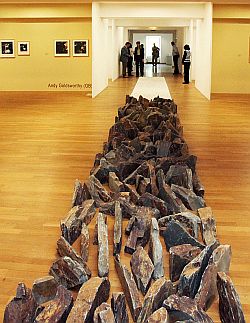 Im Unterschied zu Werken der Land Art, die in der Zeit überdauern (wollen), tendiert der britische Land Art-Künstler Richard Long eher dazu, in der Natur keine bleibenden Spuren zu hinterlassen. So war eine seiner frühesten Arbeiten im Naturraum eine gerade Linie, die durch längeres Hin- und Hergehen auf einer Wiese entstand und nach relativ kurzer Zeit wieder verschwand („A line made by walking“, 1967). Hier manifestiert sich eine in den Sechziger Jahren zeittypische kapitalismusfeindliche Haltung, die sich dezidiert dem im Kunstbetrieb vorherrschenden Verständnis des Kunstwerks als Ware, als vermarktbares, handelbares Objekt verweigert. Zuweilen schafft Long aber in Galerien und Museen auch reduzierte, minimalistische Bodenskulpturen aus Treibholz oder Steinen, so im Koblenzer Ludwig Museum die „Cornwall Carrara Line“ (1988), ein hinsichtlich Material, Farbe und Struktur kontrastierendes Ensemble aus grobem südenglischen Schiefer und feinem toskanischen Marmor.