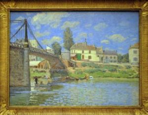 Hinreißend ist die geradezu physisch spürbare atmosphärische Frische vor allem der Flußlandschaften mit ihrer Dominanz reiner Blautöne, die den Himmel und das Gewässer bestimmen. Als herausragendes Beispiel sei nur „Die Brücke von Villeneuve-La-Garenne“ (1872) aus der „heroischen“ Phase des sich entfaltenden Impressionismus erwähnt, das aus dem New Yorker
