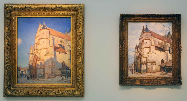 Ähnlich obsessiv, wie Monet die Kathedrale von Rouen zu den verschiedenen Jahres- und Tageszeiten, bei den unterschiedlichsten Lichtverhältnissen sowie bei allen nur erdenklichen Witterungsverhältnissen „porträtiert“ hat, hat auch Sisley die gotische Kirche Notre-Dame von Moret-sur-Loing immer wieder gemalt – am Morgen bei Regenwetter, im abendlichen Sonnenlicht, am