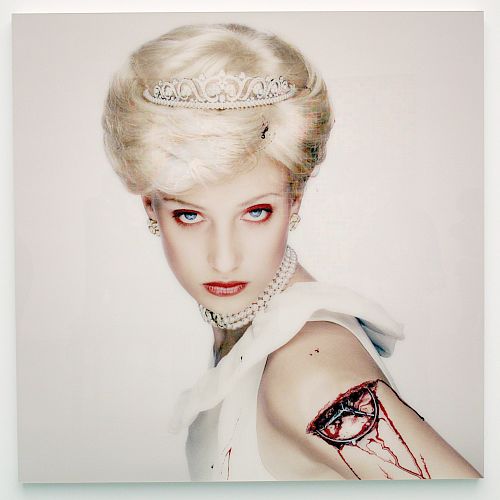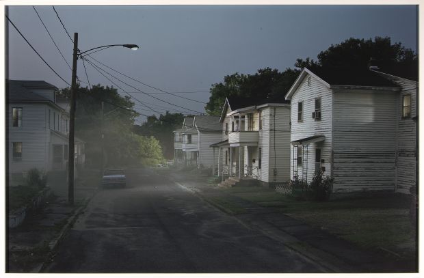 Schon zu Lebzeiten Ikone und durch ihren mystifizierten Tod beinahe zur Heiligen geworden ist Diana Spencer, Princess of Wales, "Königin der Herzen" der Yellow Press und ihrer Leser(innen). Ihr hat - ich erwähnte es oben - der Holländer Erwin Olaf mit seinem Gemälde "Di † 1997" aus der Serie "Royal Blood" ein makabres Denkmal gesetzt, das nun selbst das Zeug hat, zur Ikone zu werden. Nicht ohne Grund wurde dieses Bild als Plakat- und Werbemotiv für die Wuppertaler Ausstellung ausgesucht. Eines der eindrucksvollsten Werke der Wuppertaler Ausstellung und durch seine Teilnahme wirklich sensationell ist Gregory Crewdsons 145 x 223 cm große Fotoinszenierung "Esther Terrace" (2006). Crewdson beherrscht wie kein zweiter in der Fotografie die Gegenwart der Tristesse bis hin zur düsteren Existenzangst einzufangen. Vor ihm hat das in der Malerei Edward Hopper zur Perfektion gebracht. Gregory Crewdsons Entwürfe sind jedoch von ungleich komplexerer Anlage. Gewiß ist er seit Beginn des 21. Jahrhunderts einer der weltweit maßgeblichen Fotografen.