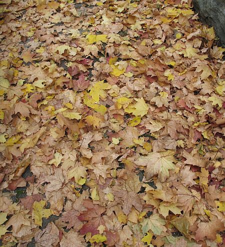 Voll stiller Blätter, gelb und braun,