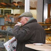 Stille Bäckerei heute Morgen. Ich sehe eine Mitarbeiterin der Pflegedienstfrau, die alle paar Monate nach Oma schaut. Im Gesicht wird sie der Leiterin immer ähnlicher. Am Sonntagmorgen, wie heute, sagt sie, erfreut sie sich am Vogelgesang und der Stille.