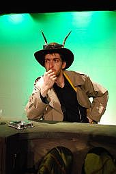 An der Geschichte, die das Insekt mit unklarer Identität als Rahmen des Stücks erzählt, während es in Trenchcoat und Sonnenbrille seinen Lieblingsdrink an der Bar nimmt (Rosenblätter auf Eis) – an dieser eher typischen Abenteuergeschichte allein kann das beträchtliche Vergnügen nicht liegen: Diverse Kriechtiere kriegen sich mit sonstigem Ungeziefer in die Haare, pardon: Fühler, bis der Held die Guten rettet. Aber: Theater kann eben mehr.
